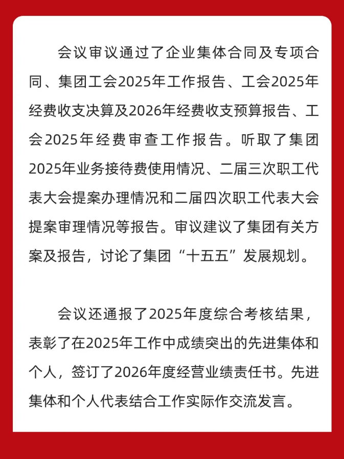 锚定战略筑基础 转型升级谋突破——集团召开二届四次职工代表大会暨工会二届三次会员代表大会