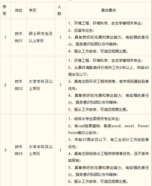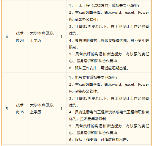 本次招聘技术岗5名。岗位设置及具体要求见下表。
